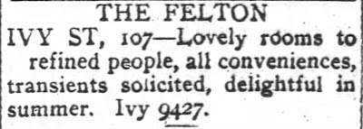 Among the apartment buildings was The Felton, which sat on Ivy St. just to the left of the Cooledge on the 1919 map.